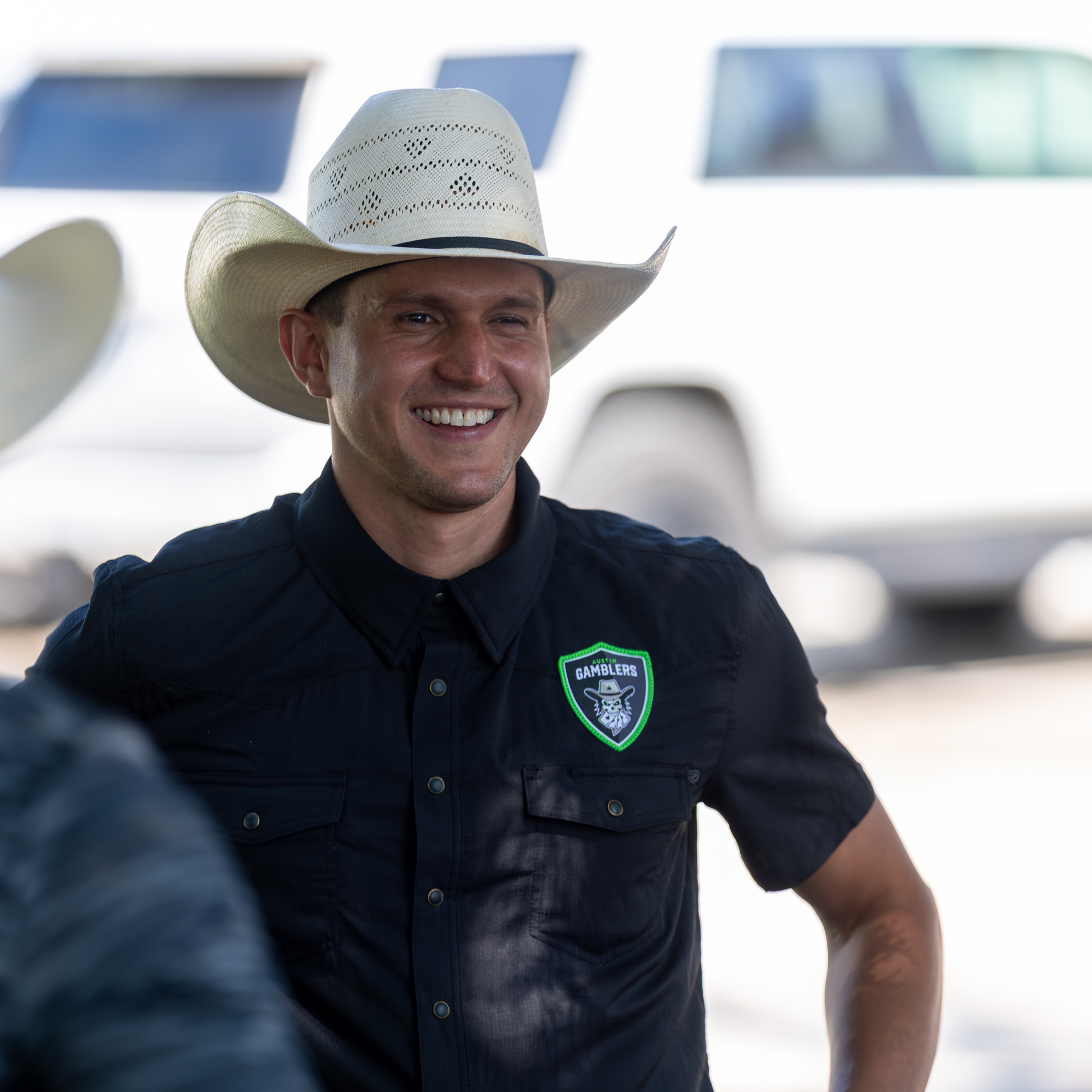 Ride in style with the Rock & Roll Denim x Austin Gamblers Short Sleeve Shirt. Crafted for comfort and durability, this classic western-inspired shirt features authentic pearl snap buttons and a clean, sharp design that represents the bold spirit of the Austin Gamblers. Perfect for game days, casual outings, or showing off your PBR pride, it’s a versatile addition to any fan’s wardrobe.